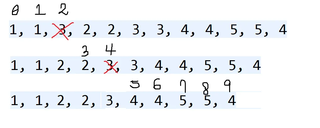 int[] arr = {1, 1, 3, 2, 2, 3, 3, 4, 4, 5, 5, 4};