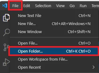 5-1 좌측 상단 메뉴에서 [ File ] - [ Open Folder… ] 를 선택한다.