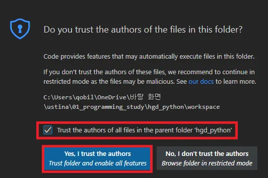 단계에서 생성한 개인 폴더 안의 workspace 폴더로 경로를 지정한다.