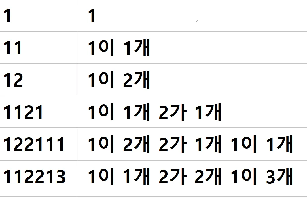 다음은 읽고, 말하기 수열의 규칙이다.